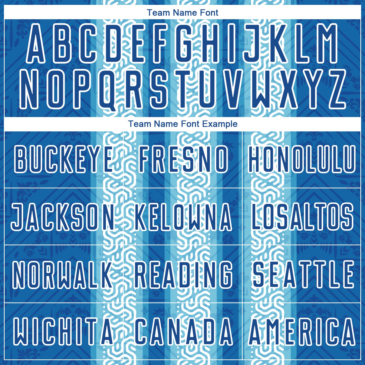 Personalized Blue Light Blue-White Ethnic Stripes Sublimation Soccer Uniform Jersey Team Custom Name and Number