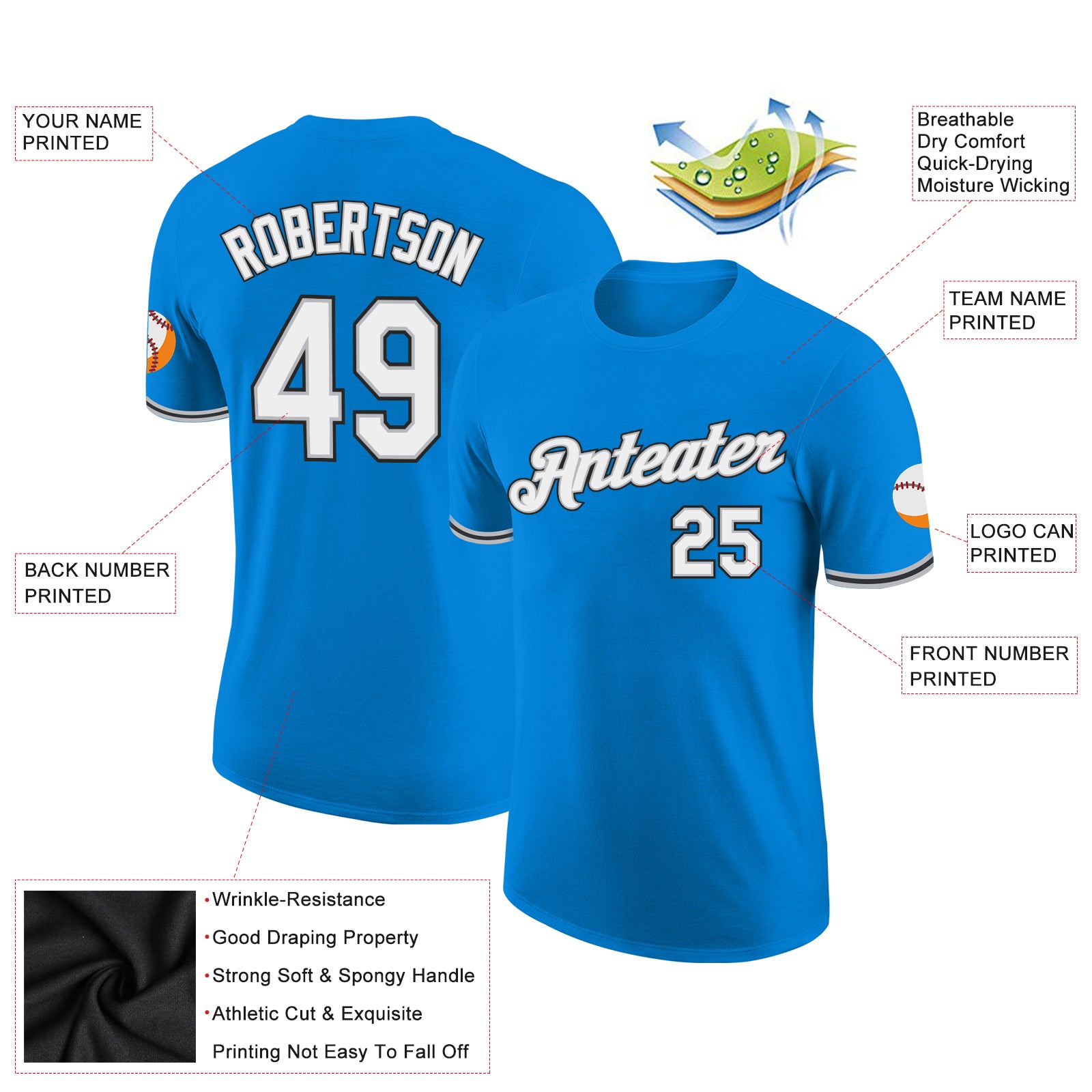 Personalized Blue White Gray-Black Performance T-Shirt Team Custom Name and Number