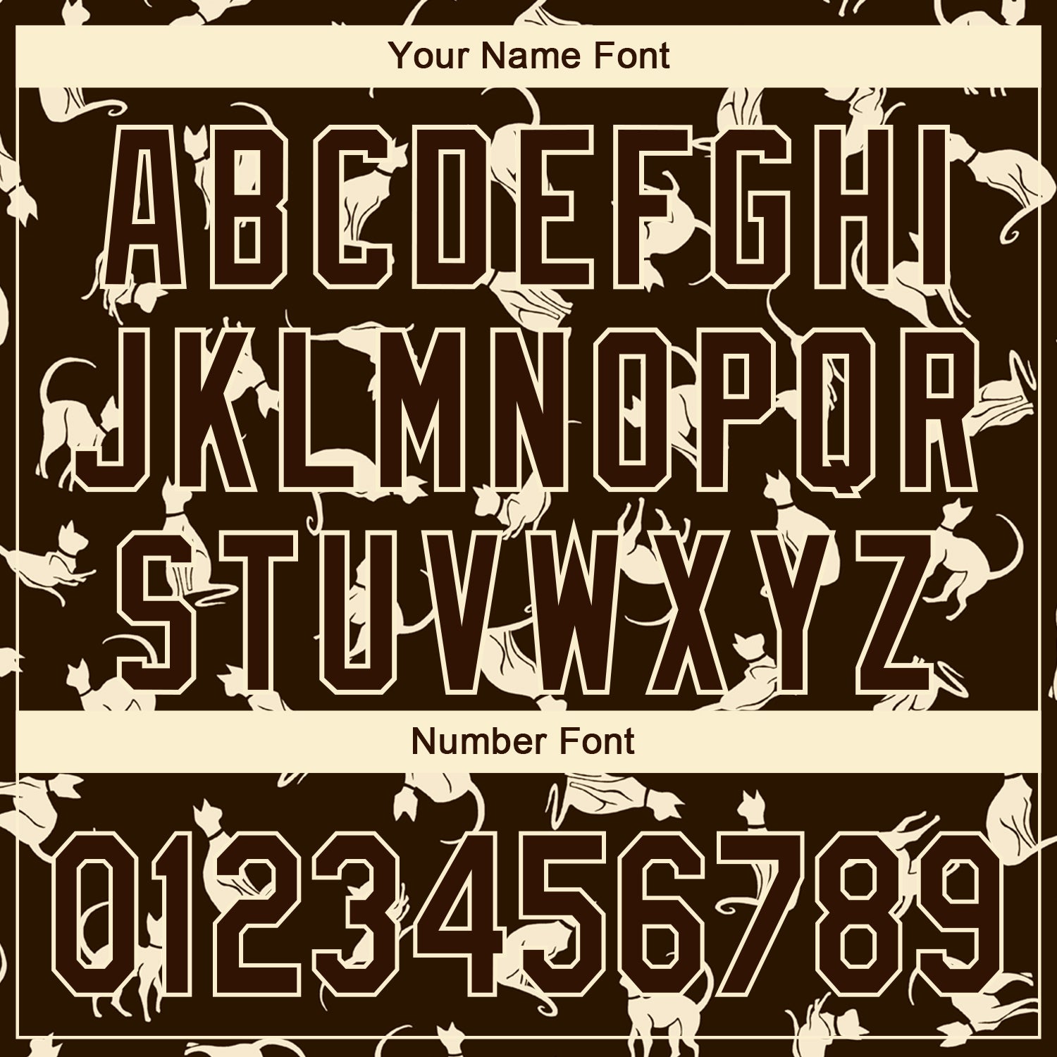 Custom Name and Number Cat Baseball Jersey – Personalized Brown Cream 3D Pattern Design Personalized Brown Cream 3D Pattern