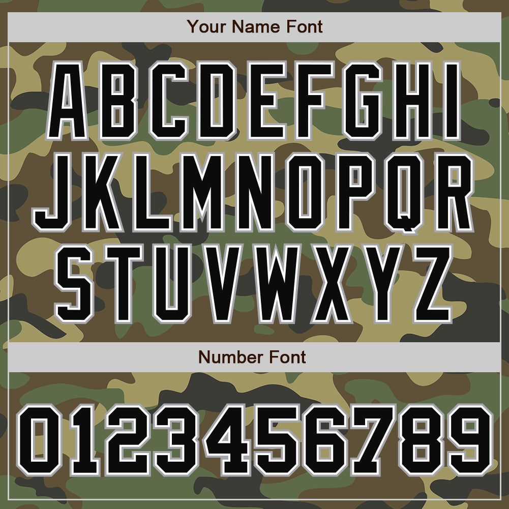 Camo Bomber Jacket Black Gray Varsity Letterman Personalized Salute to Service Full-Snap Personalized Camo Black-Gray Bomber