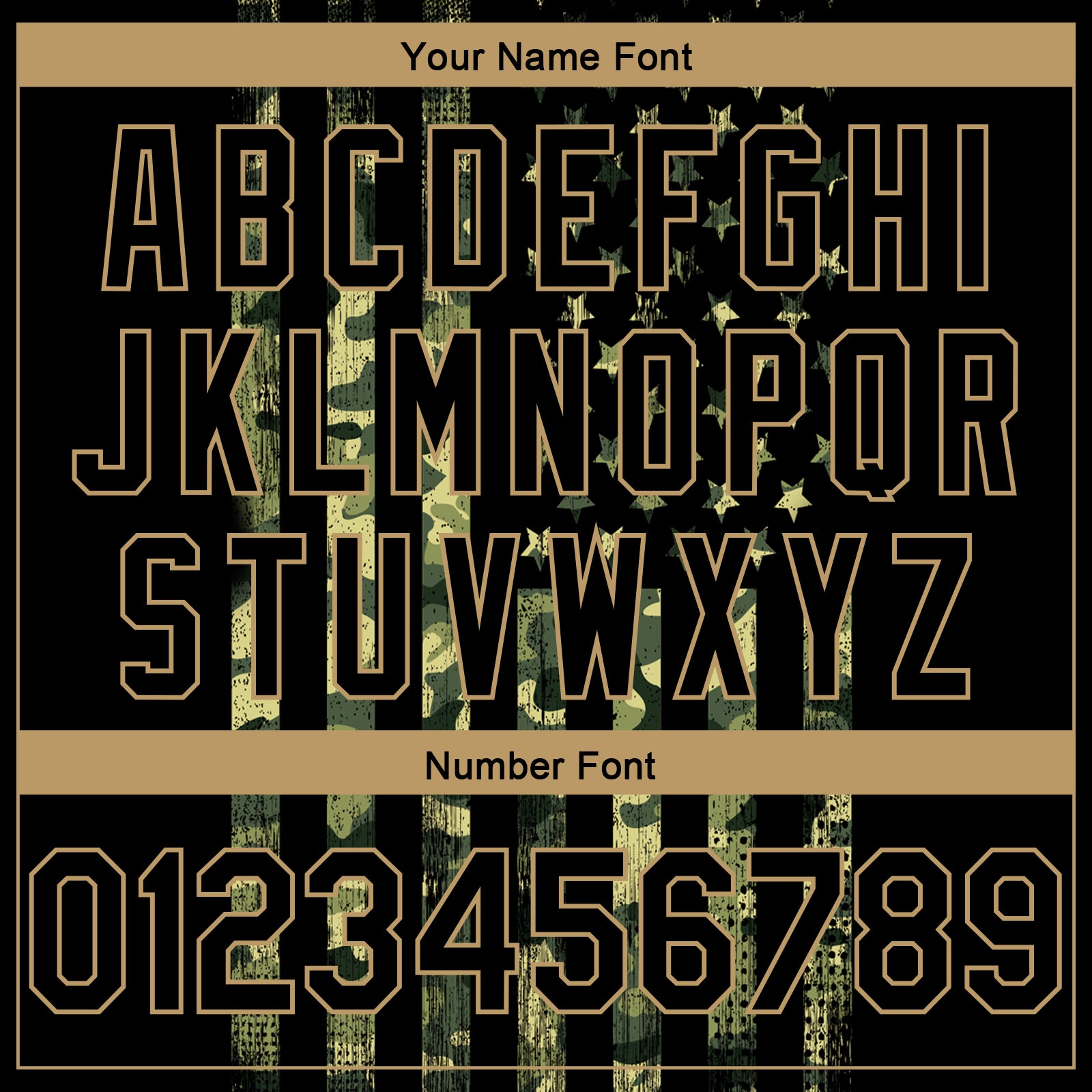 Custom Camo Black Old Gold 3D American Flag Basketball Jersey – Salute to Service Personalized Camo Black-Old Gold 3D American
