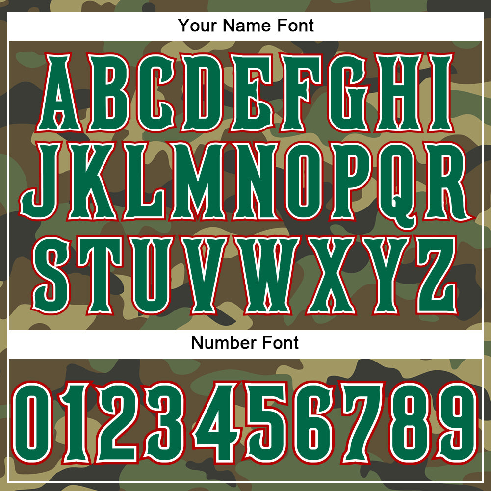 Custom Camo Salute to Service T-Shirt with Team Name & Number – Kelly Green-Red Performance Tee Personalized Camo Kelly Green-Red