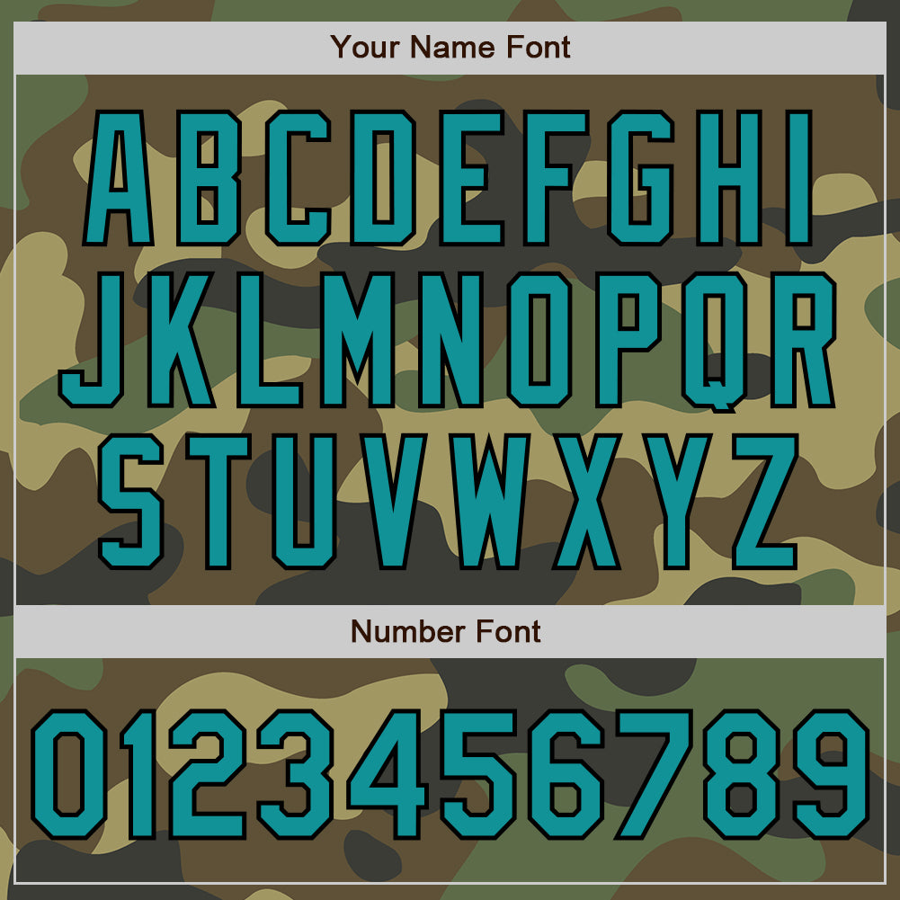Personalized Camo Teal-Black Bomber Full-Snap Varsity Letterman Salute To Service Jacket