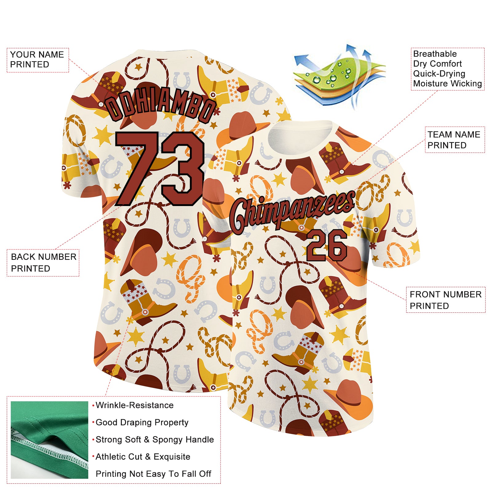 Personalized Cream Crimson-Black 3D Cowboy Accessory Performance T-Shirt