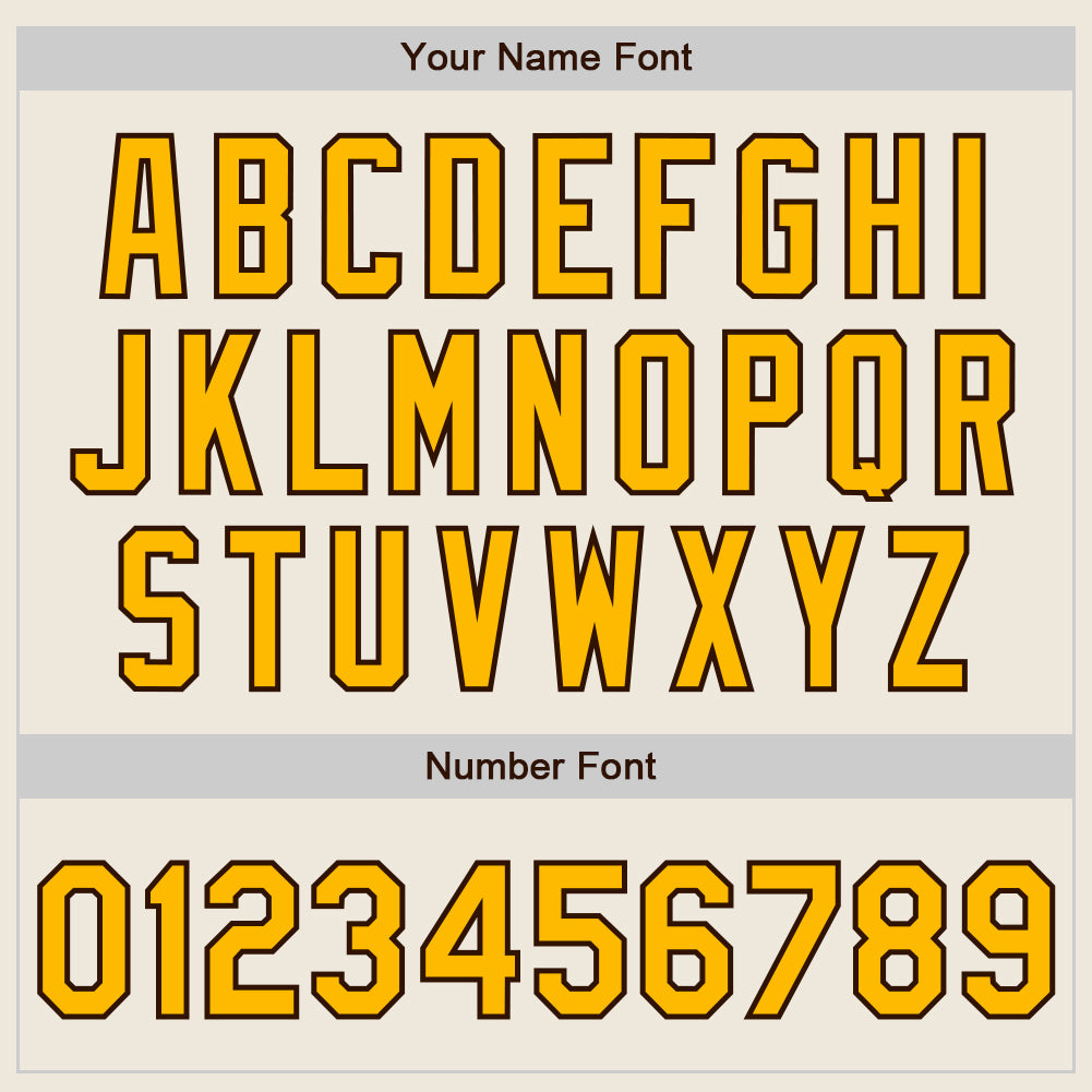 Custom Name and Number Authentic Baseball Jersey in Personalized Cream Gold-Brown Colors, 3 Arm Shapes Available Personalized
