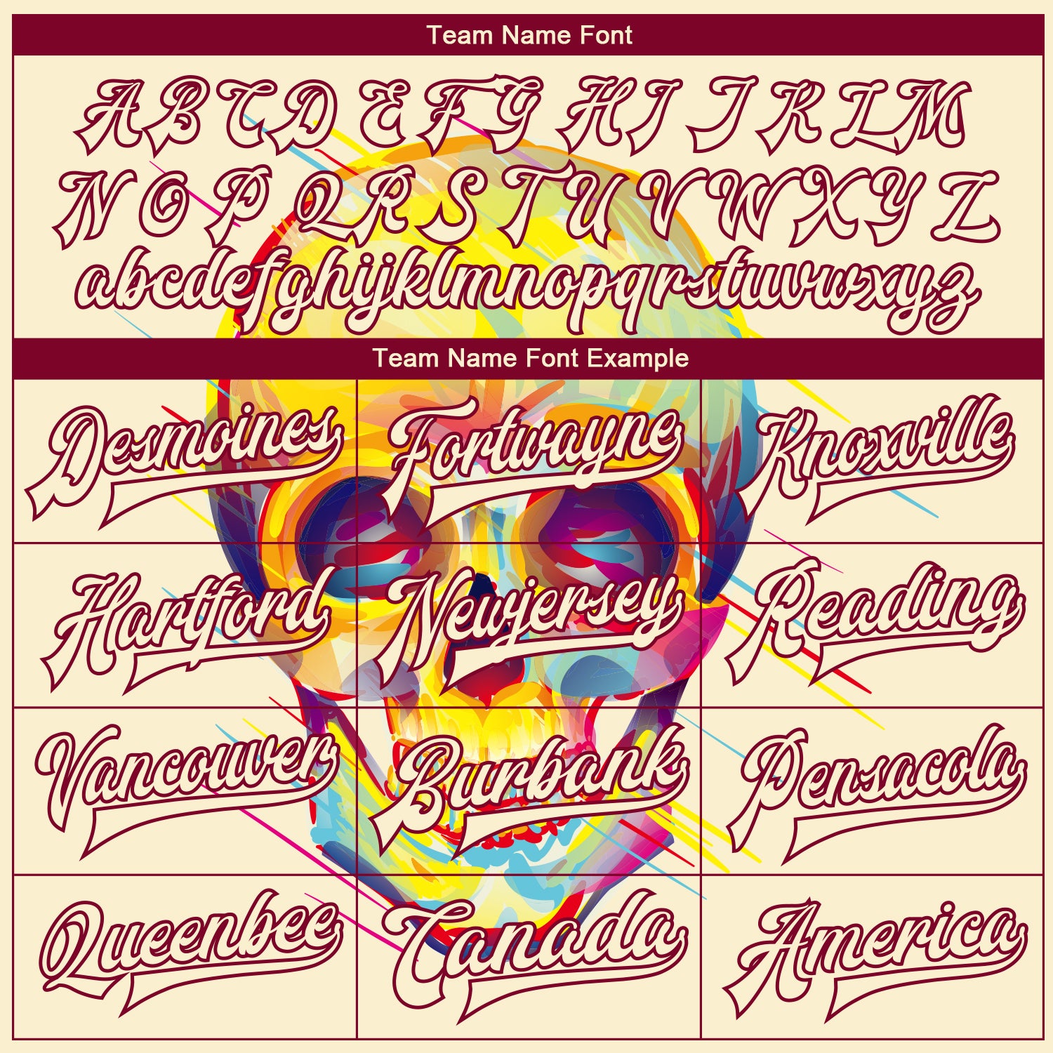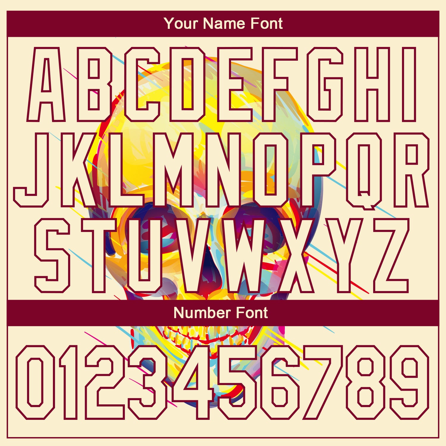 Personalized Cream Maroon Skull Fashion 3D Bomber Full-Snap Varsity Letterman Jacket