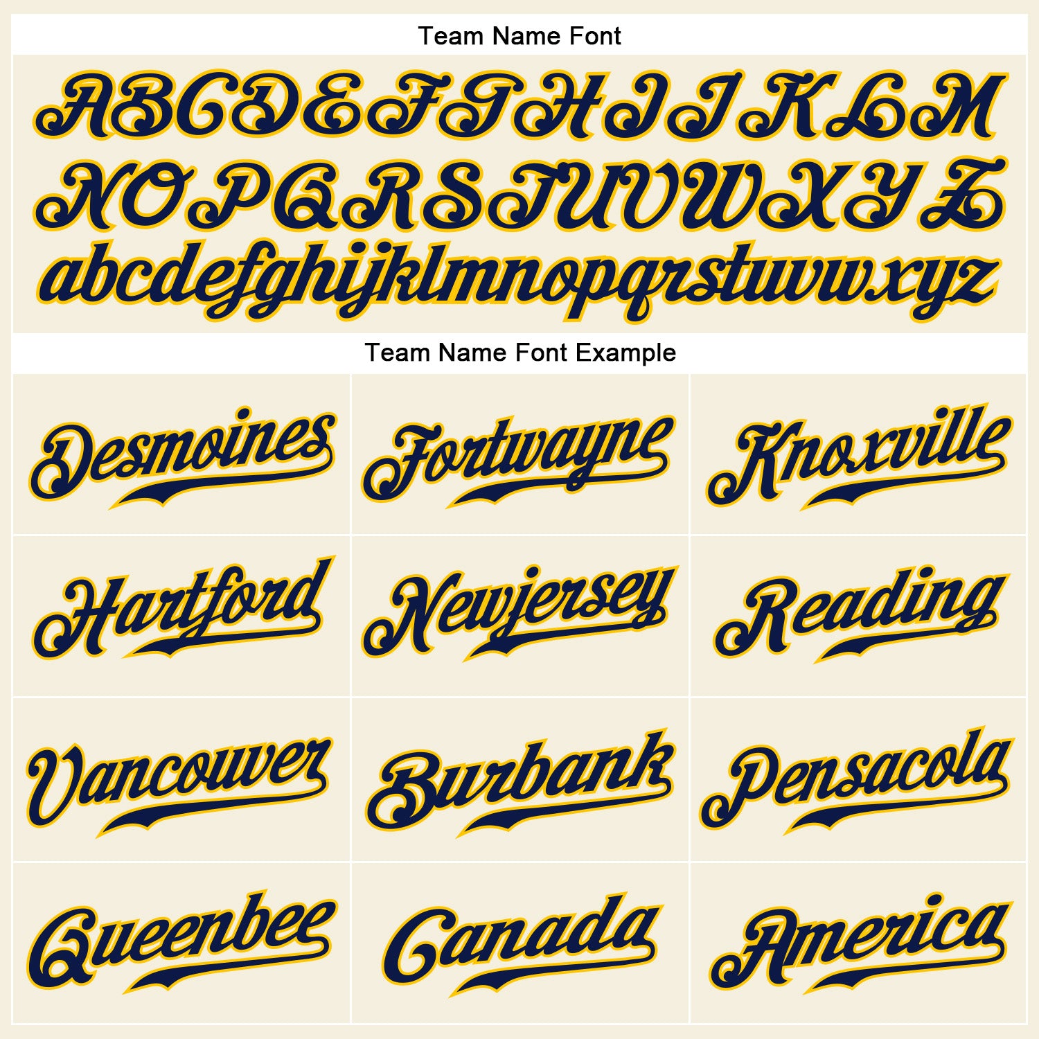 Custom Personalized Navy Gold Baseball Jersey – Authentic Cream Navy Pinstripe Team Name & Number Personalized Cream Navy