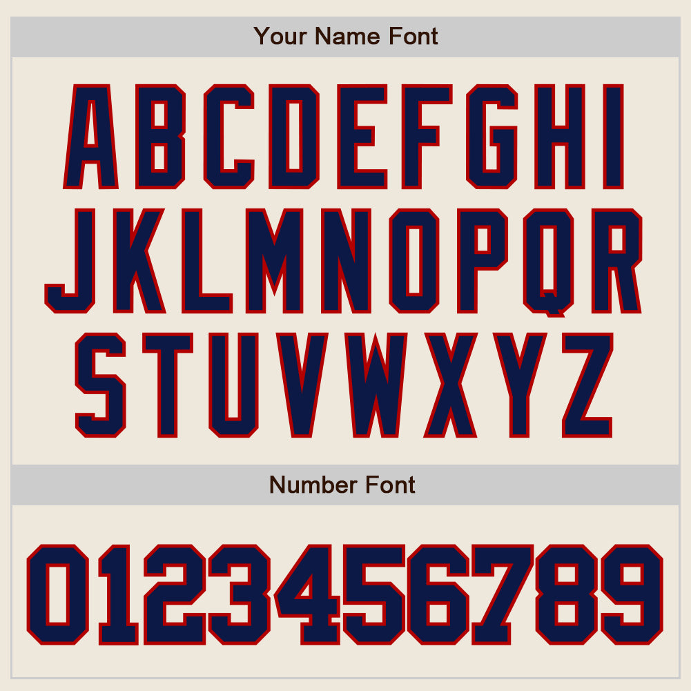 Personalized Cream Navy Pinstripe Red Baseball Jersey 3