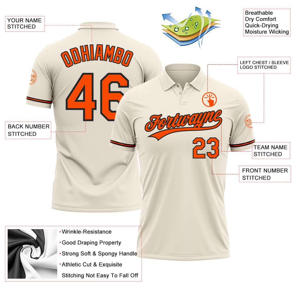 Personalized Cream Orange-Black Performance Vapor Golf Polo Shirt