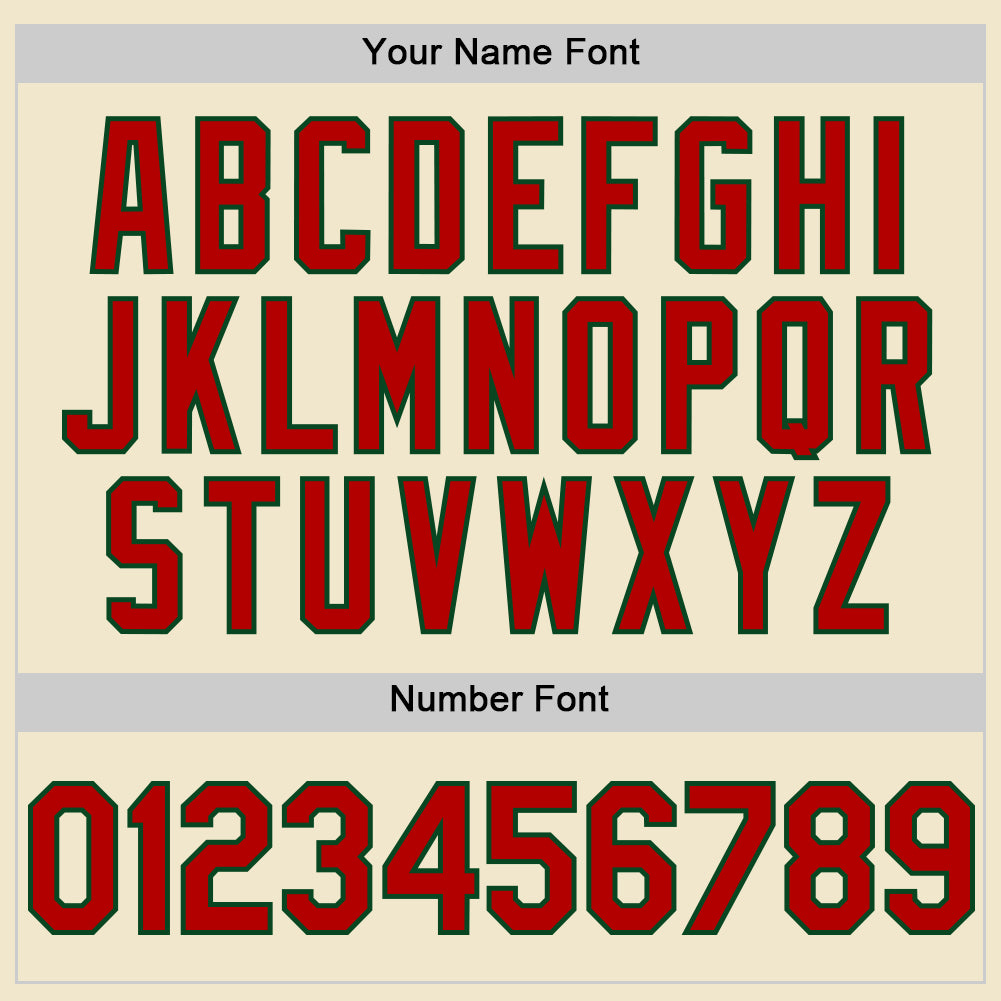 Personalized Red-Green Cream Baseball Jersey – Throwback Mesh Style Personalized Cream Red-Green Mesh Throwback Baseball