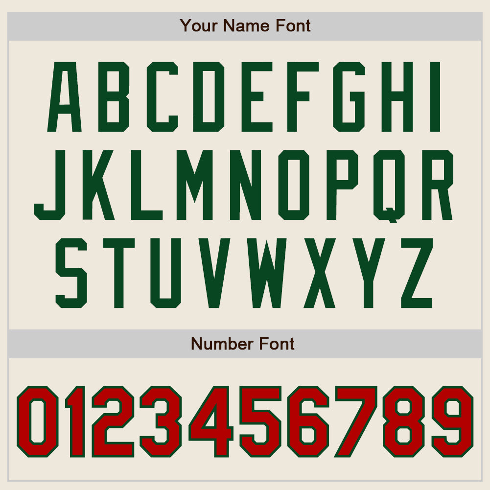 Personalized Baseball Jersey Cream Red-Green Raglan Sleeves for Men and Women Personalized Cream Red-Green Raglan Sleeves