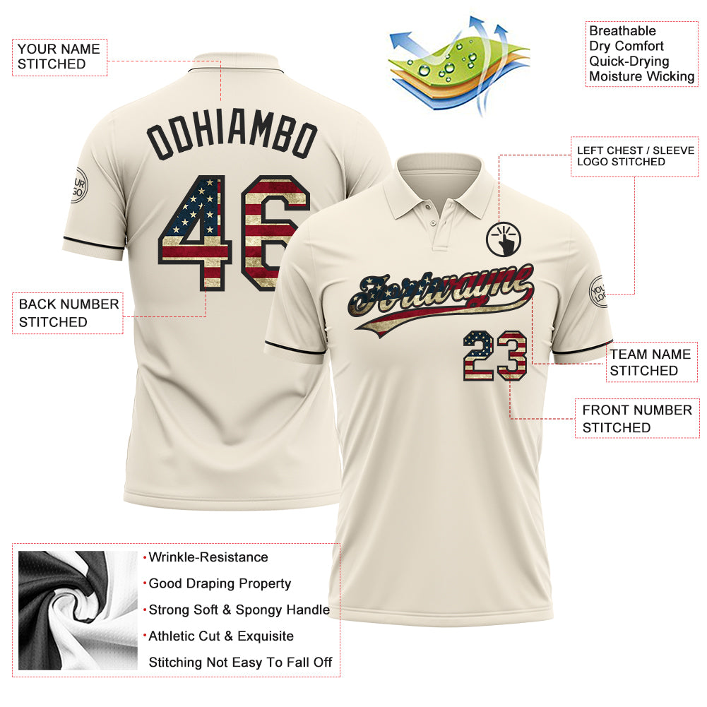 Personalized Vintage USA Flag Golf Polo Shirt – Black Performance Vapor Personalized Cream Vintage USA Flag-Black Performance