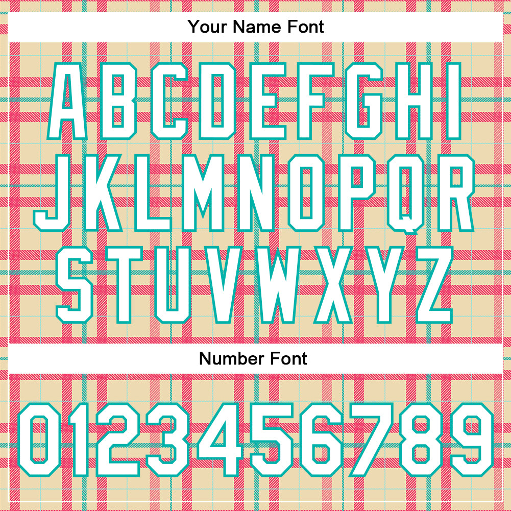 Custom Personalized Aqua Check Varsity Bomber Jacket with Name & Number – Cream White 3D Pattern Full-Snap Letterman Jacket