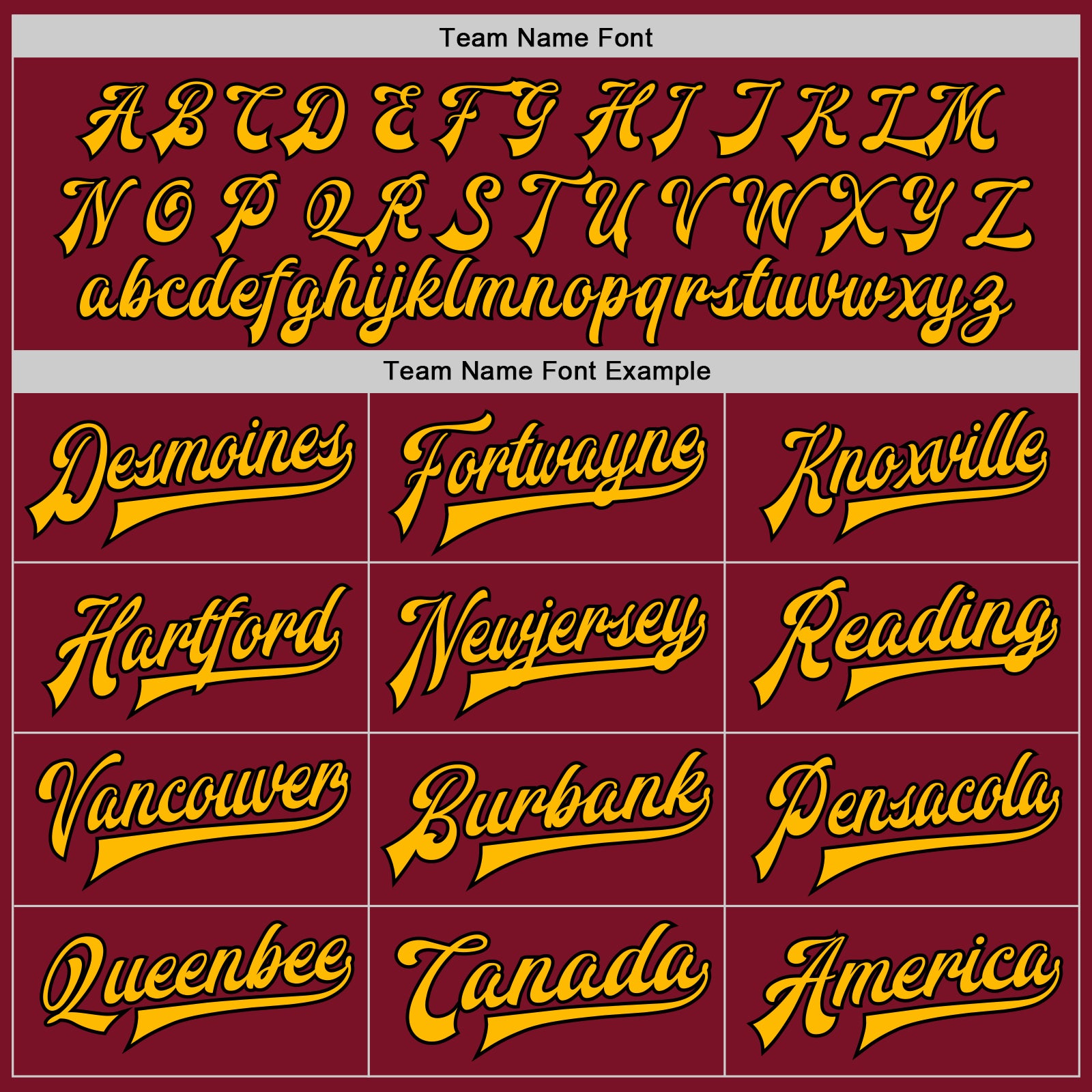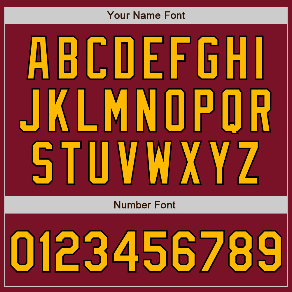 Personalized Two Tone Bomber Varsity Letterman Jacket in Crimson Gold-Black Personalized Crimson Gold-Black Bomber Full-Snap