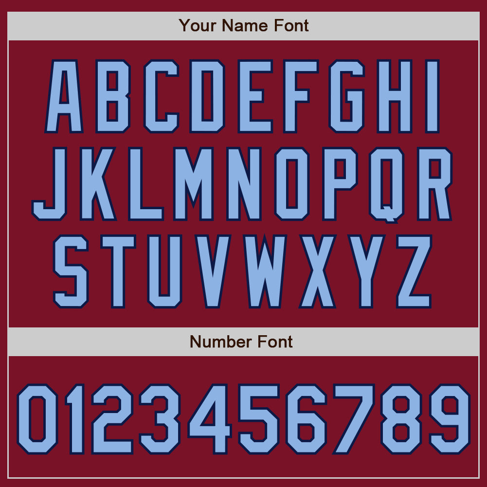 Personalized Bomber Varsity Letterman Jacket in Crimson Light Blue-Navy Full-Snap Personalized Crimson Light Blue-Navy Bomber