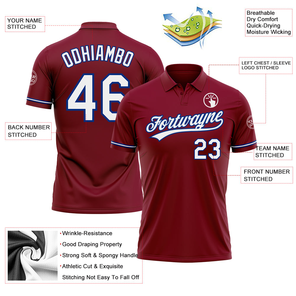 Personalized Crimson White-Royal Golf Polo Shirt for Performance with Vapor Technology Personalized Crimson White-Royal Performance