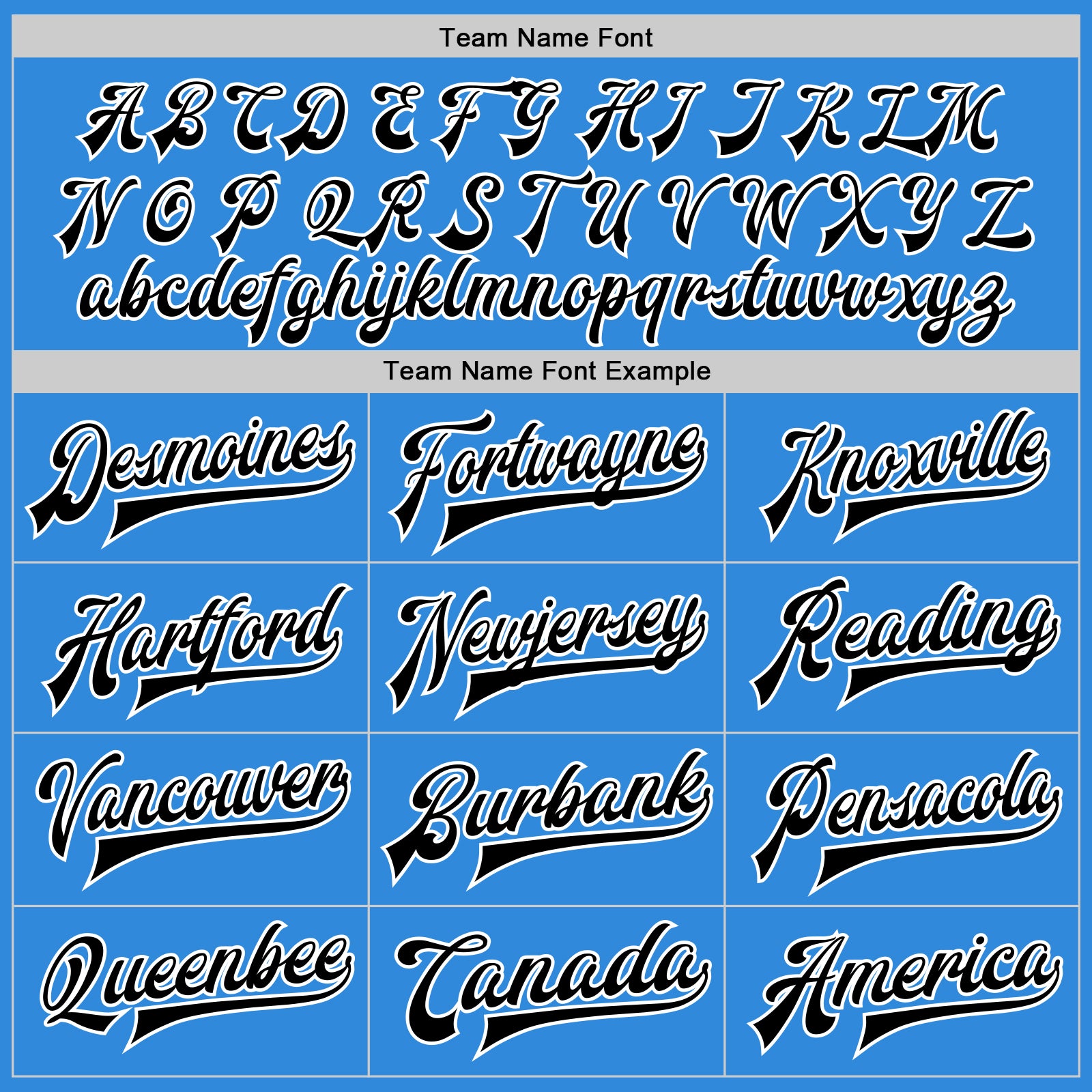 Custom Team Name Number Varsity Letterman Jacket Electric Blue Black White Bomber Full-Snap Personalized Electric Blue Black-White