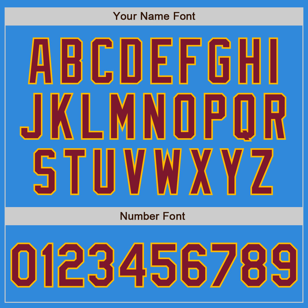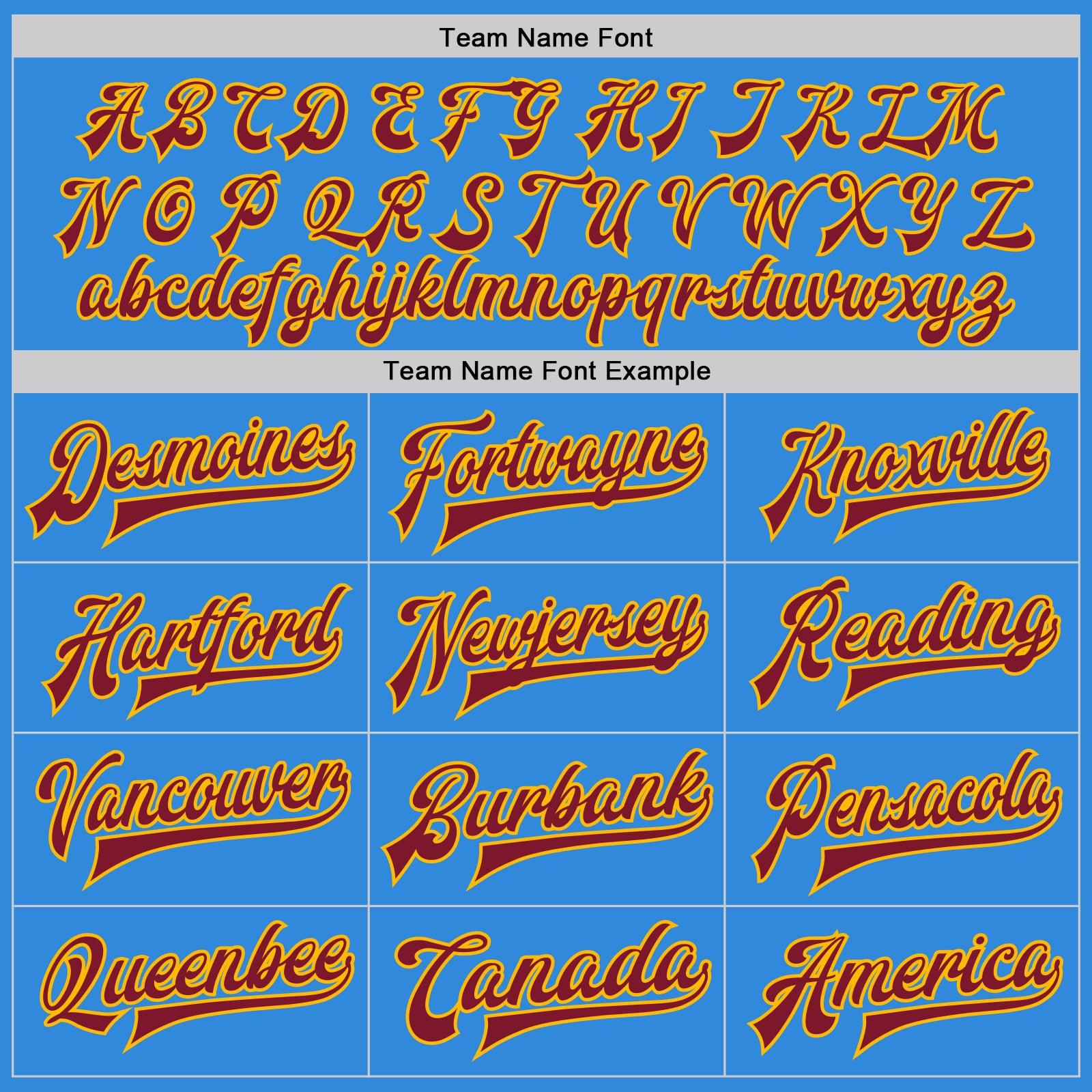 Personalized Two Tone Bomber Jacket Electric Blue Crimson Cream-Gold Full-Snap Varsity Letterman Personalized Electric Blue