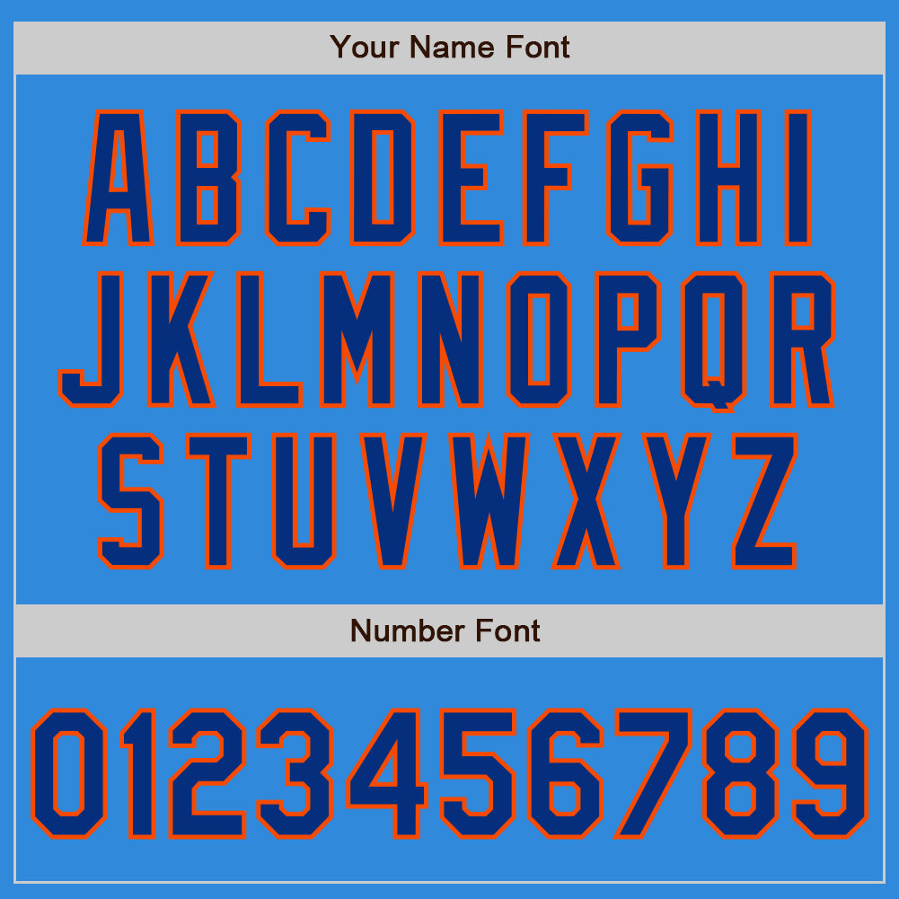 Personalized Electric Blue Royal-Orange Varsity Letterman Bomber Jacket Full-Snap Two Tone Personalized Electric Blue Royal-Orange