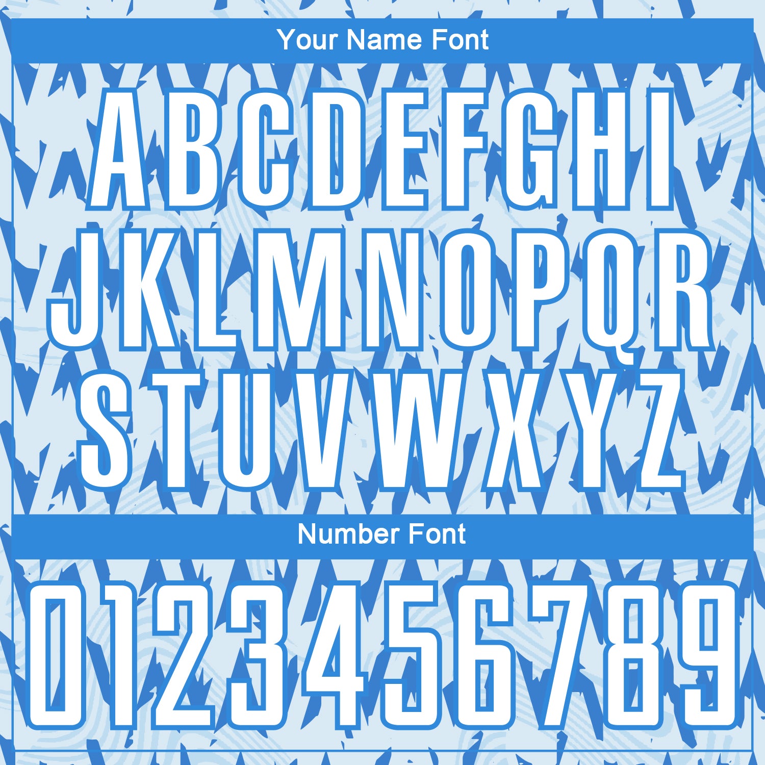 Custom Abstract Geometric Pattern Soccer Jersey – Personalized Electric Blue and White-Silver with Name & Number Personalized