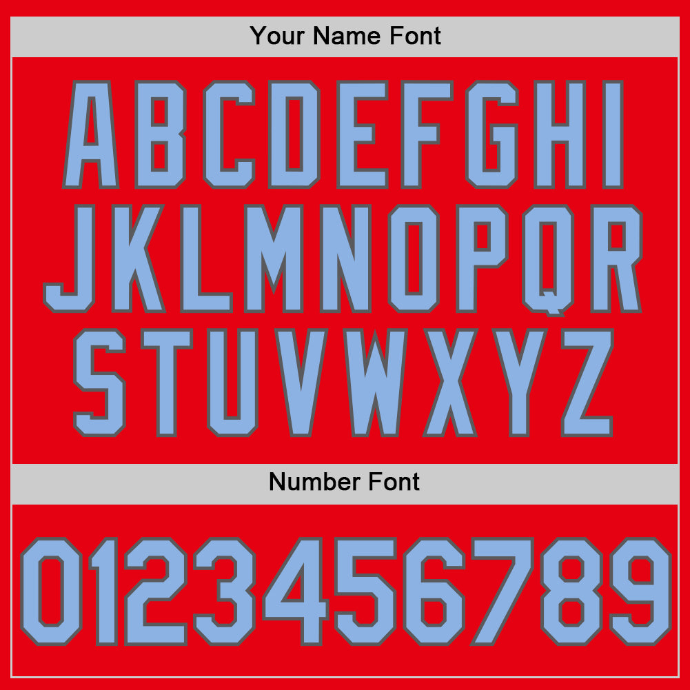 Personalized Baseball Jersey Fire Red Light Blue Steel Gray for Men and Women Personalized Fire Red Light Blue-Steel Gray