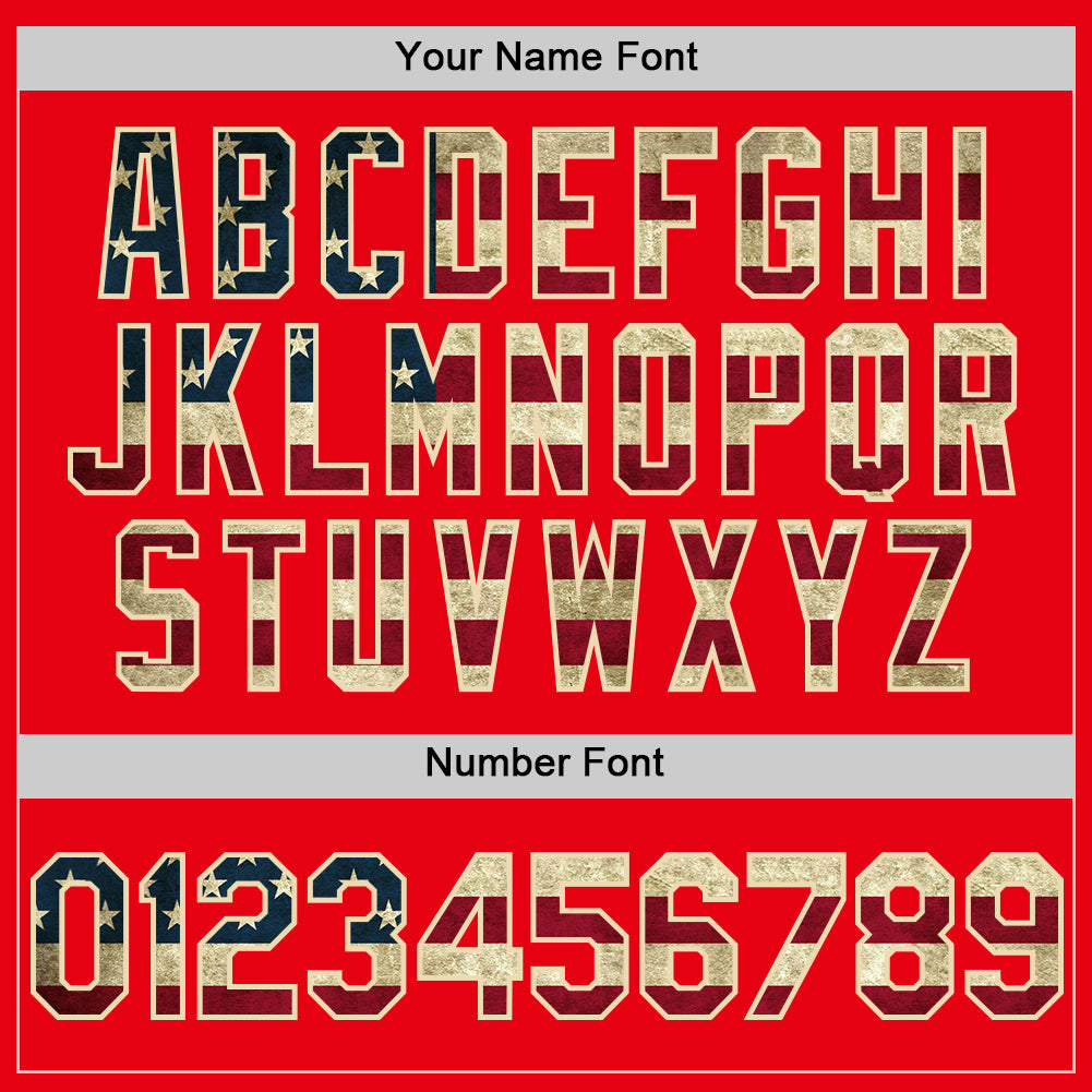 Custom Name and Number Vintage USA Flag Cream Baseball Jersey – Personalized Fire Red Design Personalized Fire Red Vintage