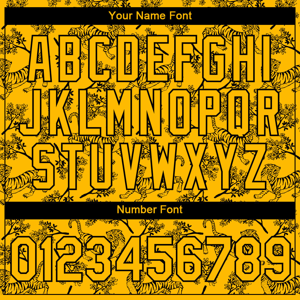 Custom Tiger T-Shirt with Personalized Gold Black 3D Pattern Design – Team Name and Number Performance Shirt Personalized