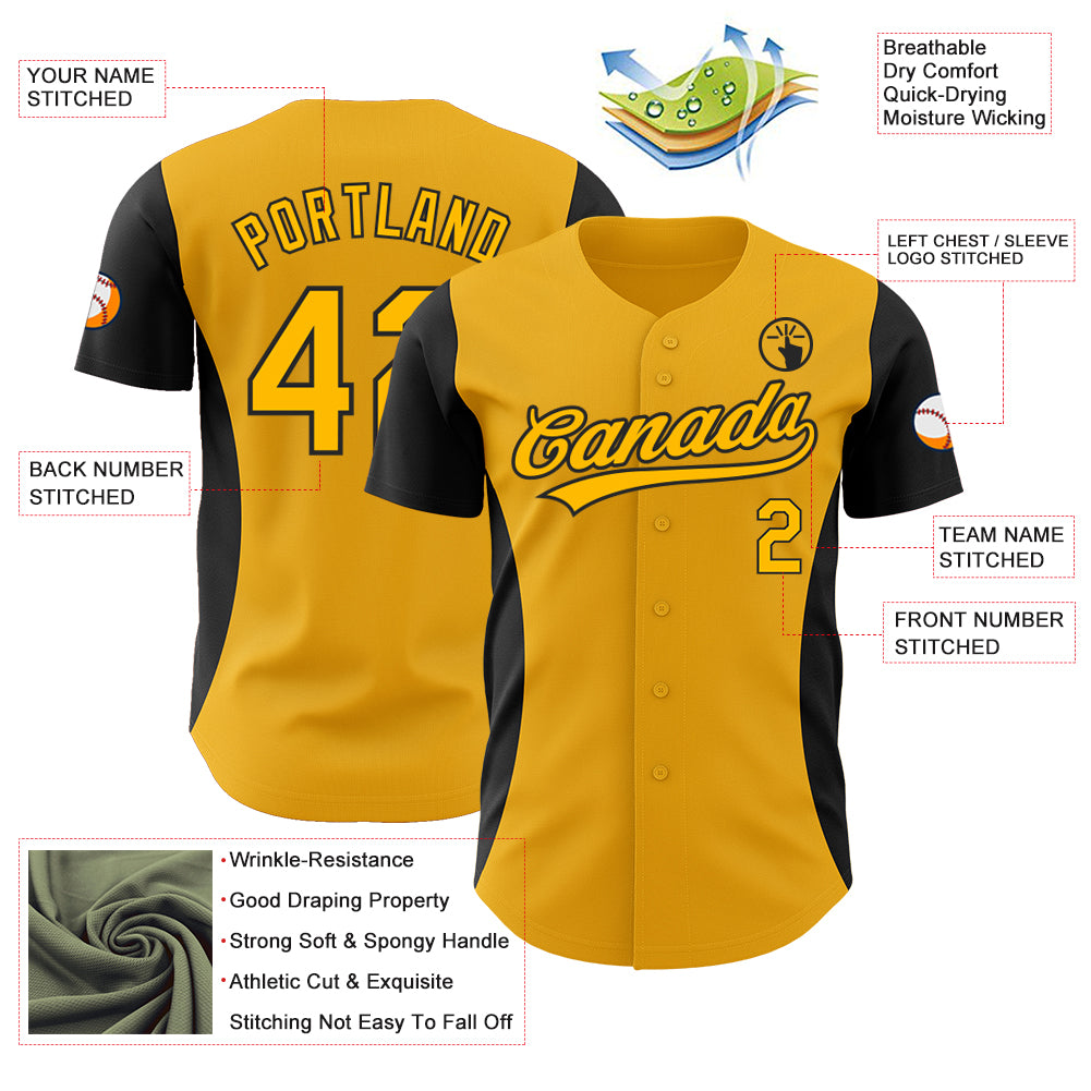 Personalized Gold Black 3D Side Stripes Baseball Jersey