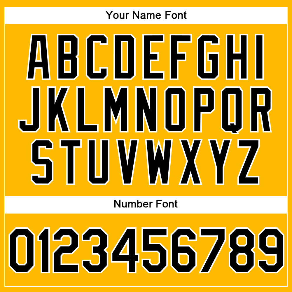 Custom Team Name Number Golfer Polo Shirt Personalized Gold Black-White Performance Personalized Gold Black-White Performance