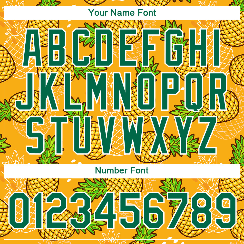 Personalized Gold Kelly Green-White 3D Pattern Design Tropical Pineapple Performance T-Shirt Team Custom Name and Number