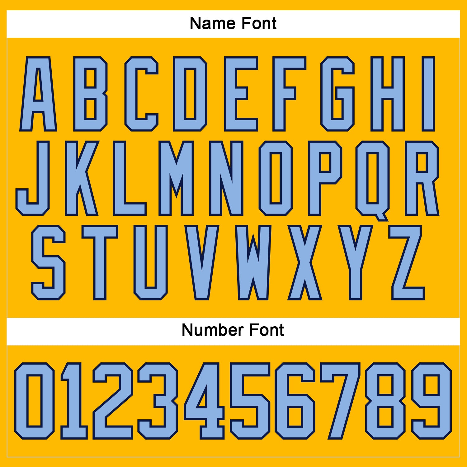 Custom Light Blue Navy Hockey Jersey with Personalized Name and Number – Gold Lace Design Personalized Gold Light Blue-Navy