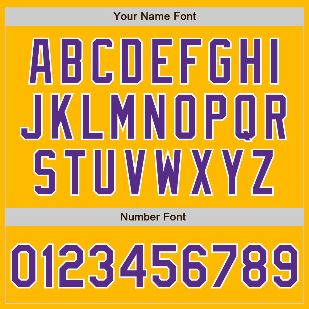 Custom Name and Number Unisex Softball Jersey – Personalized Gold Purple-White Two-Button Design Personalized Gold Purple-White