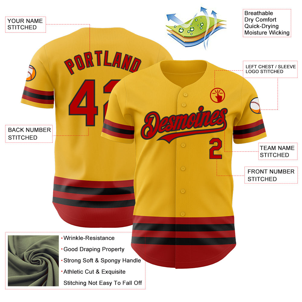 Custom Name Number Personalized Gold Red-Black Line Baseball Jersey – Authentic Team Jersey Personalized Gold Red-Black Line