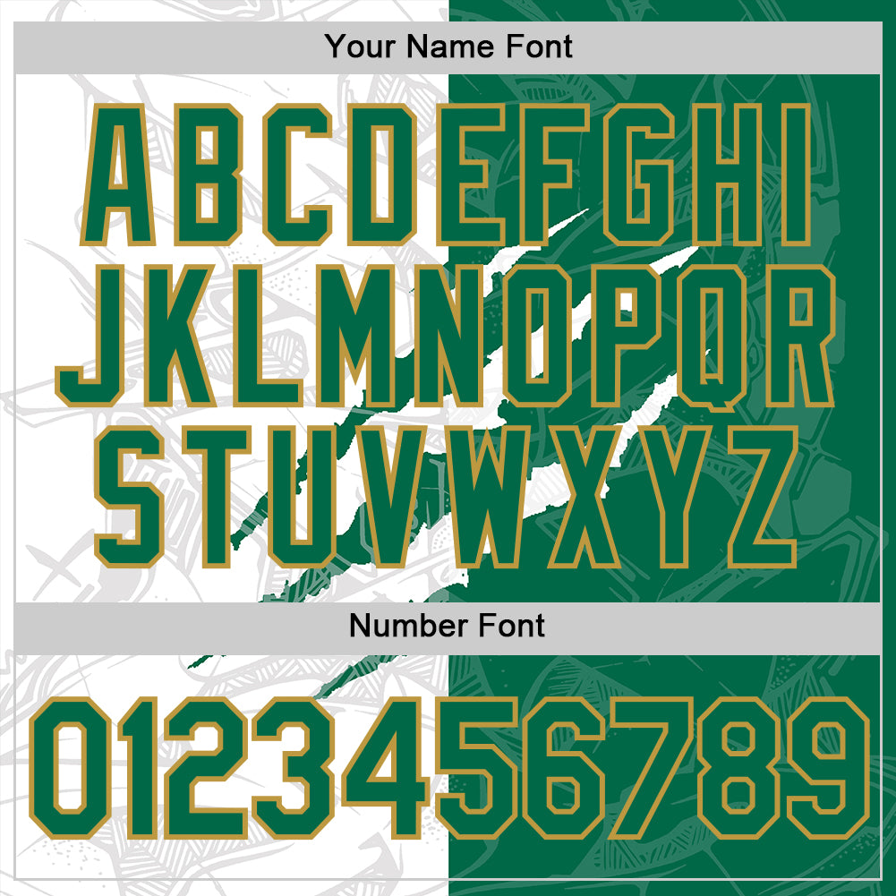 Personalized Graffiti Pattern Kelly Green-Old Gold Scratch 3D Performance T-Shirt Team Custom Name and Number