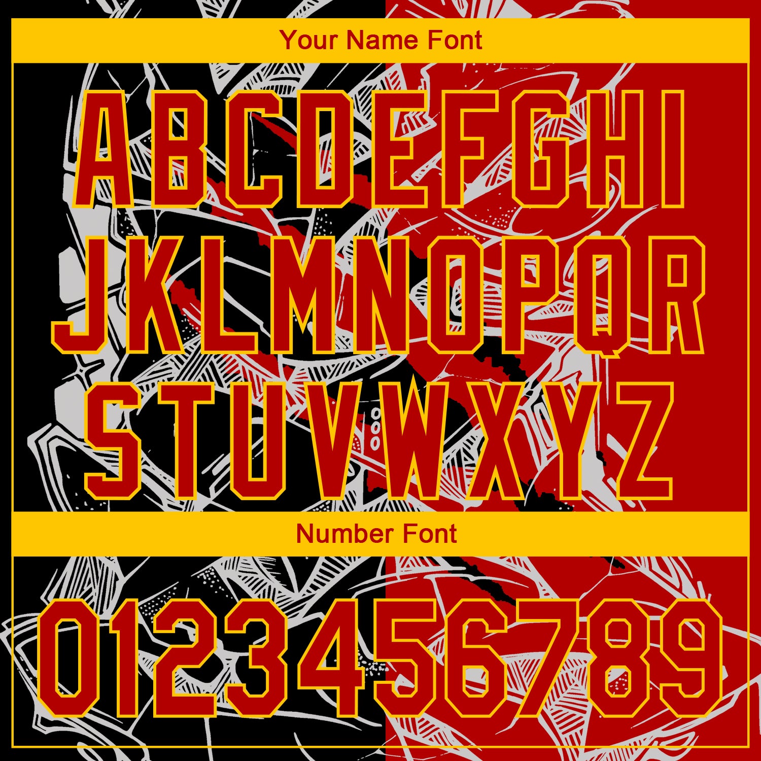 Custom Name and Number 3D Scratch Golf Polo Shirt Red-Yellow Graffiti Pattern for Team Performance Personalized Graffiti