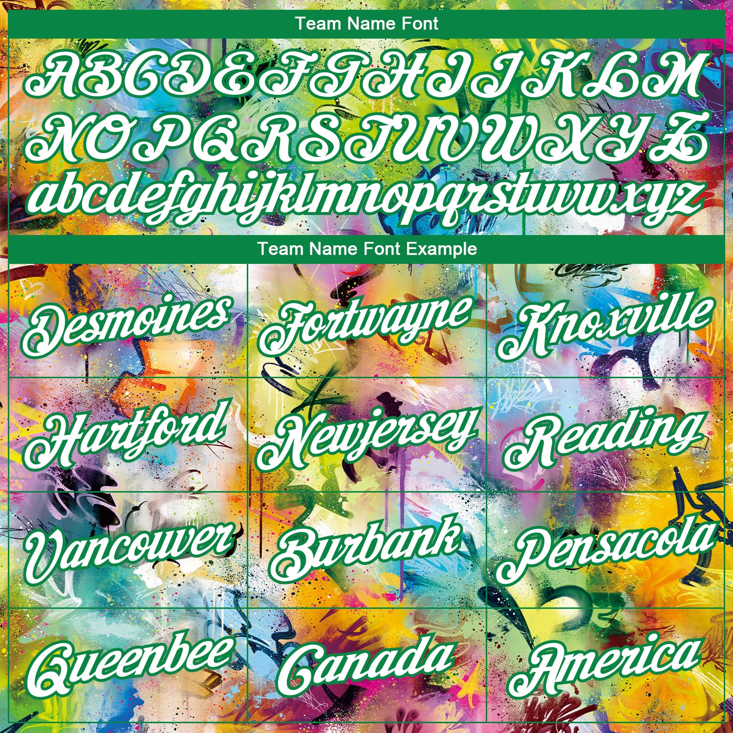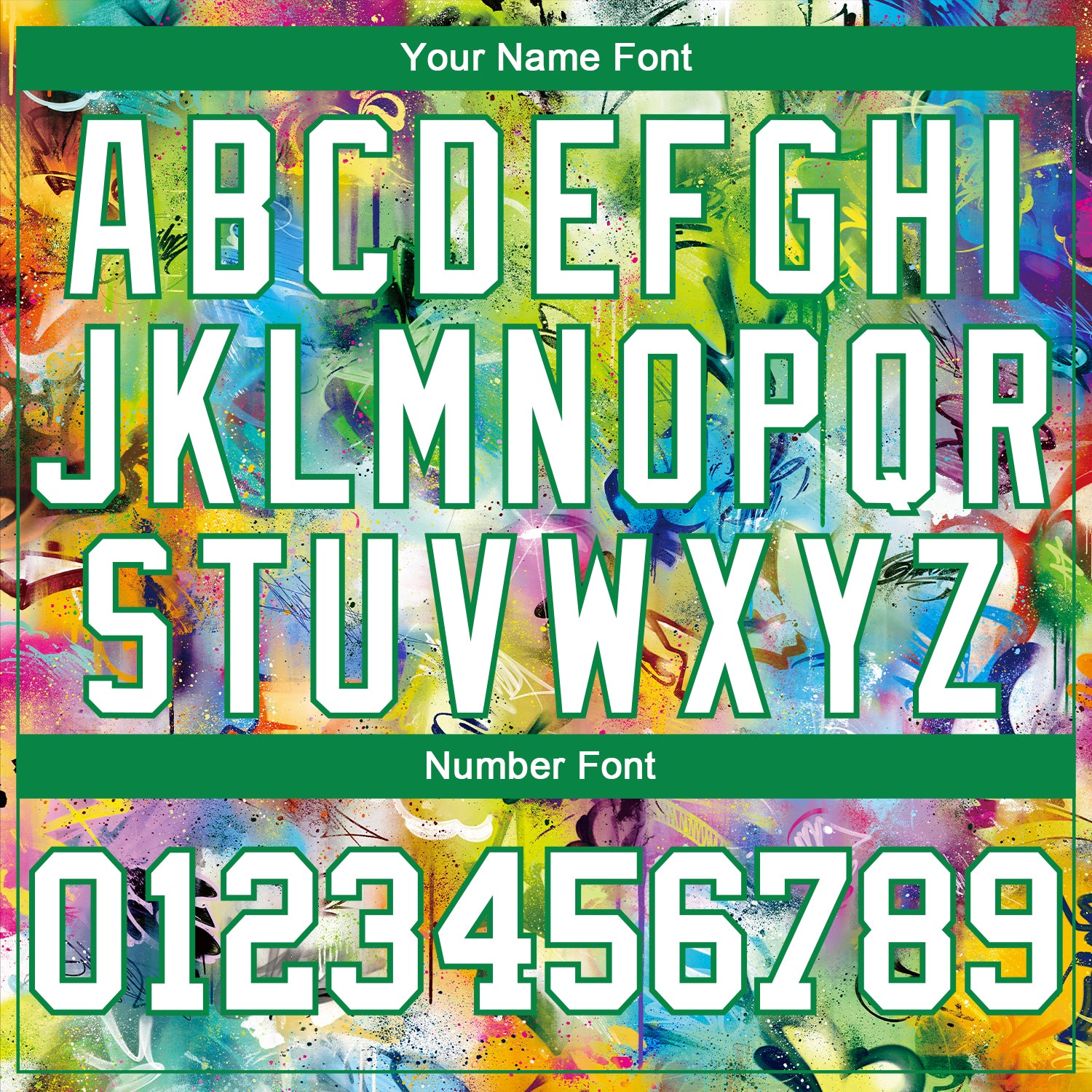 Custom Name Number 3D Long Sleeve Performance T-Shirt – Personalized Graffiti Pattern in White and Kelly Green Personalized
