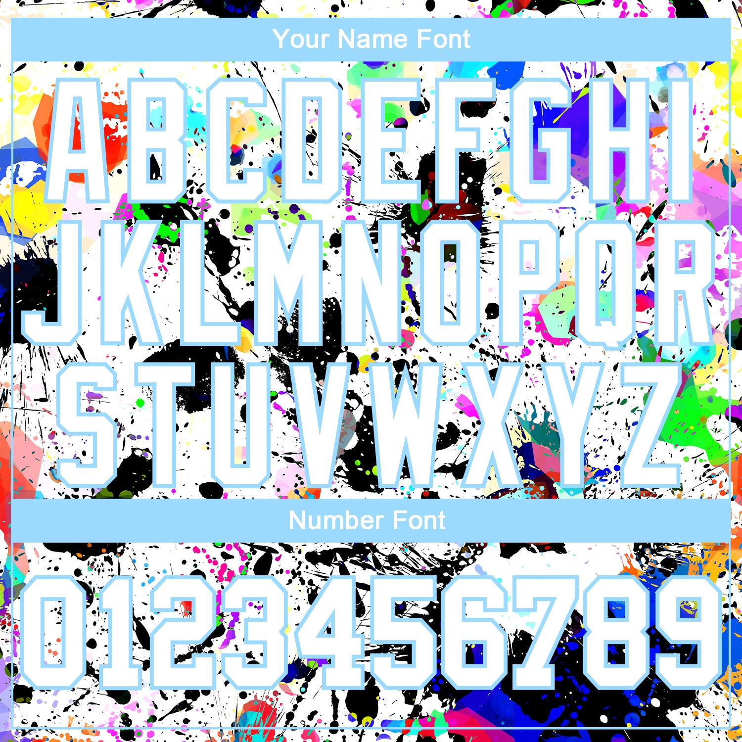 Personalized Graffiti Pattern Long Sleeve T-Shirt, White & Light Blue Splashes, 3D Performance Gear Personalized Graffiti