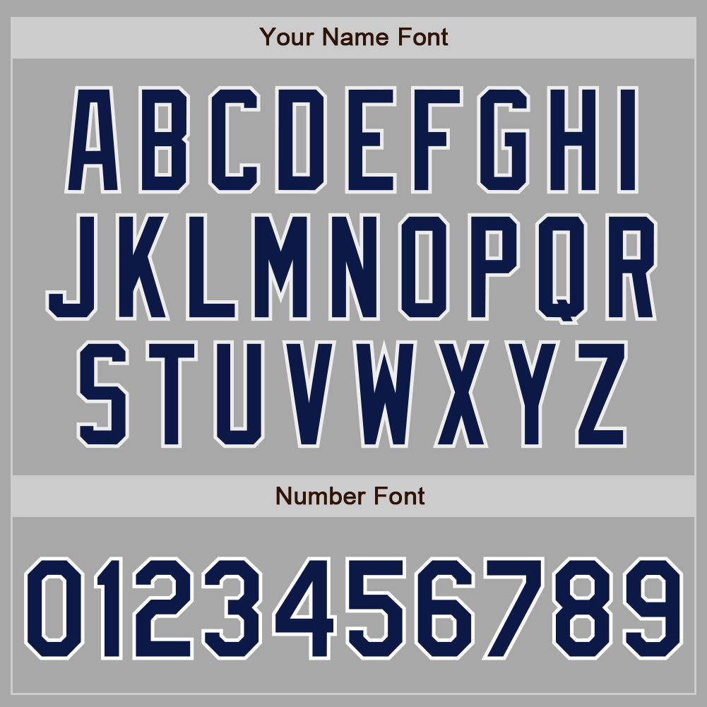 Personalized Gray Navy White Varsity Bomber Jacket Full-Snap Letterman Style Personalized Gray Navy-White Bomber Full-Snap