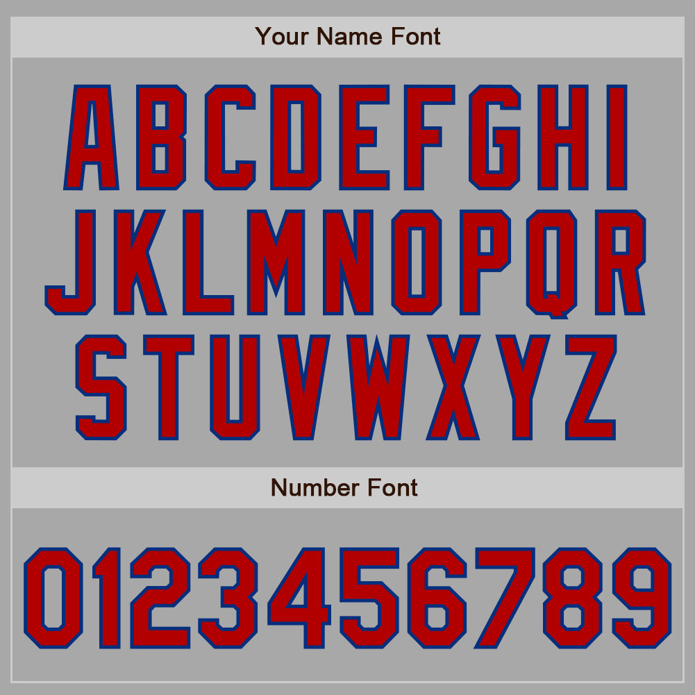 Personalized Gray Red-Royal Bomber Full-Snap Varsity Letterman Two Tone Jacket Team Custom Name and Number
