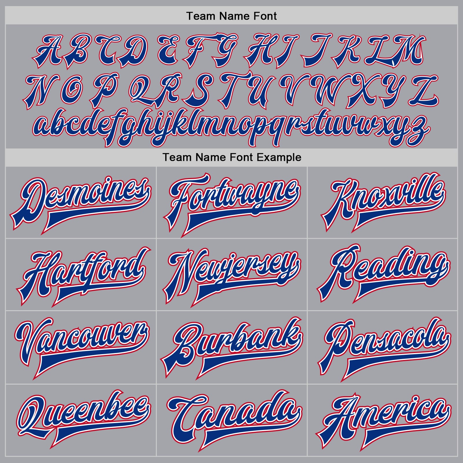 Custom Name and Number Gray Royal White-Red Varsity Bomber Full-Snap Letterman Jacket – Personalized Team Apparel Personalized