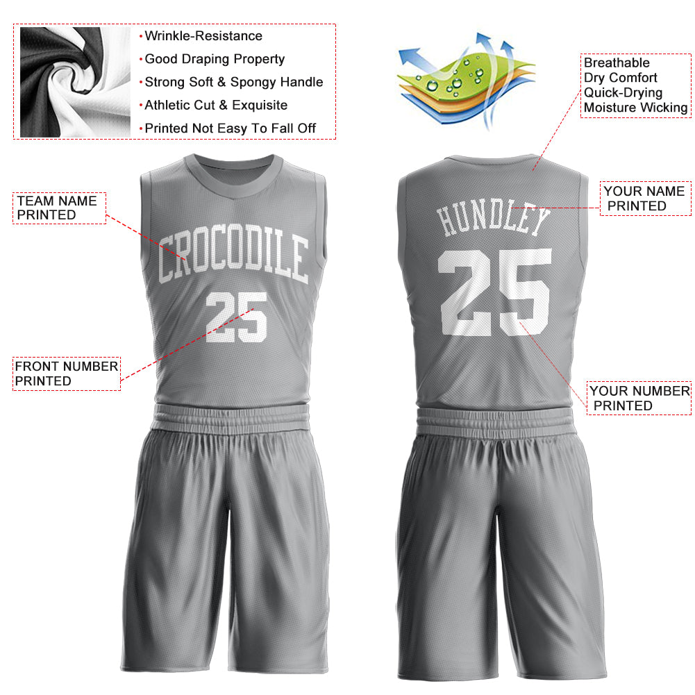 Custom Basketball Jersey Personalized with Name & Number, Gray White Round Neck Suit Personalized Gray White Round Neck Suit