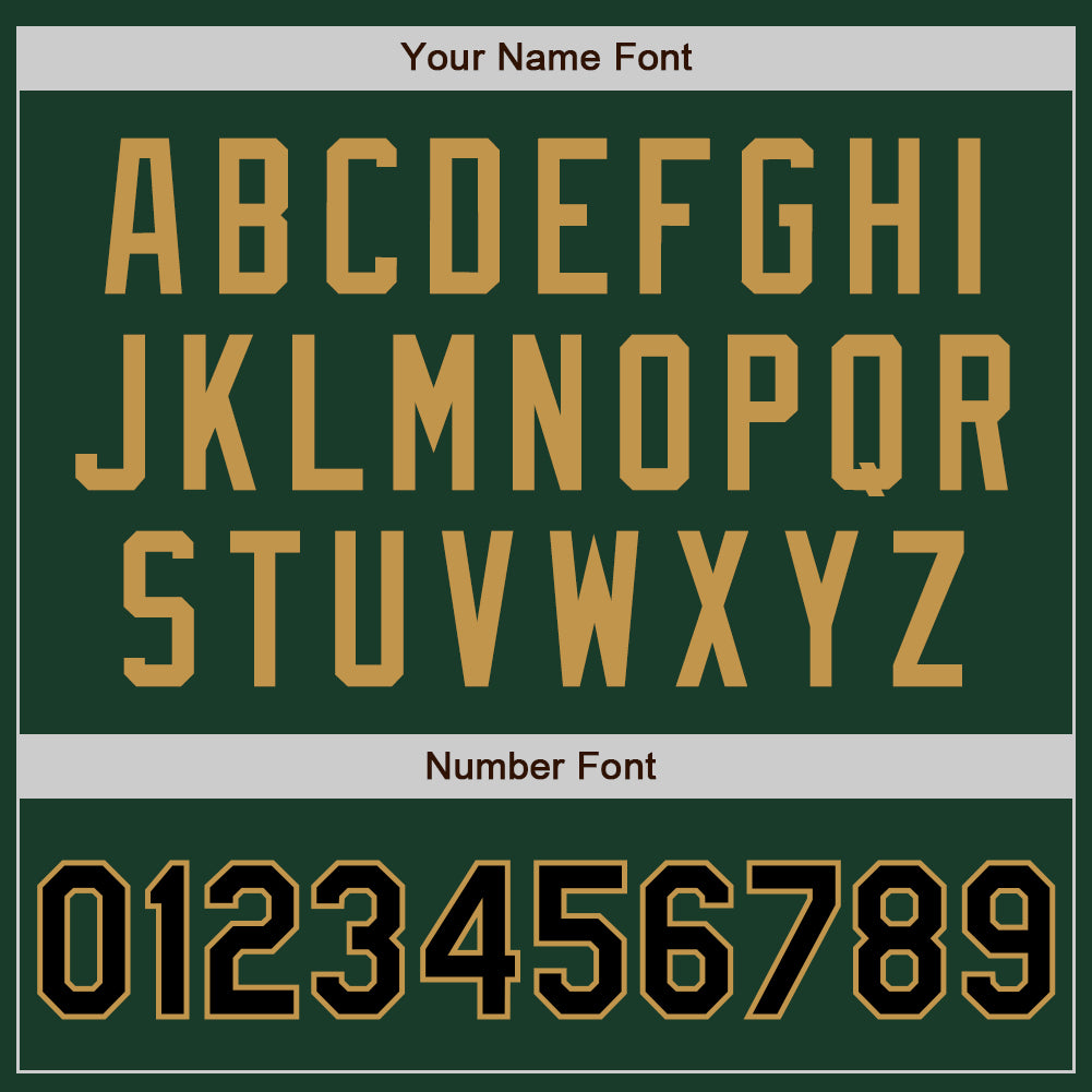 Custom Team Name Number Varsity Letterman Jacket Personalized Green Black Old Gold Bomber Full-Snap Personalized Green Black-Old