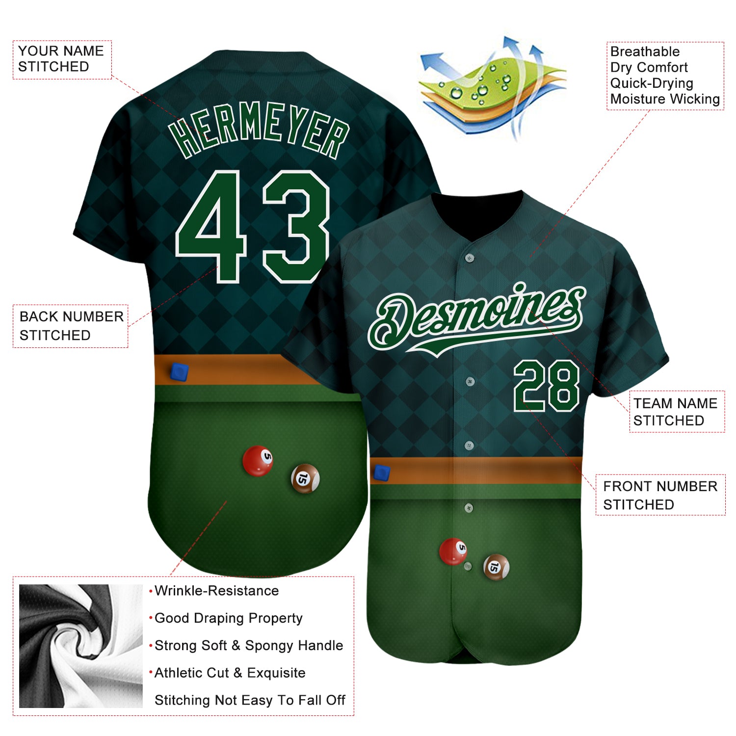 Personalized Green White 3D Pattern Design Billiards Authentic Baseball Jersey Team Custom Name and Number