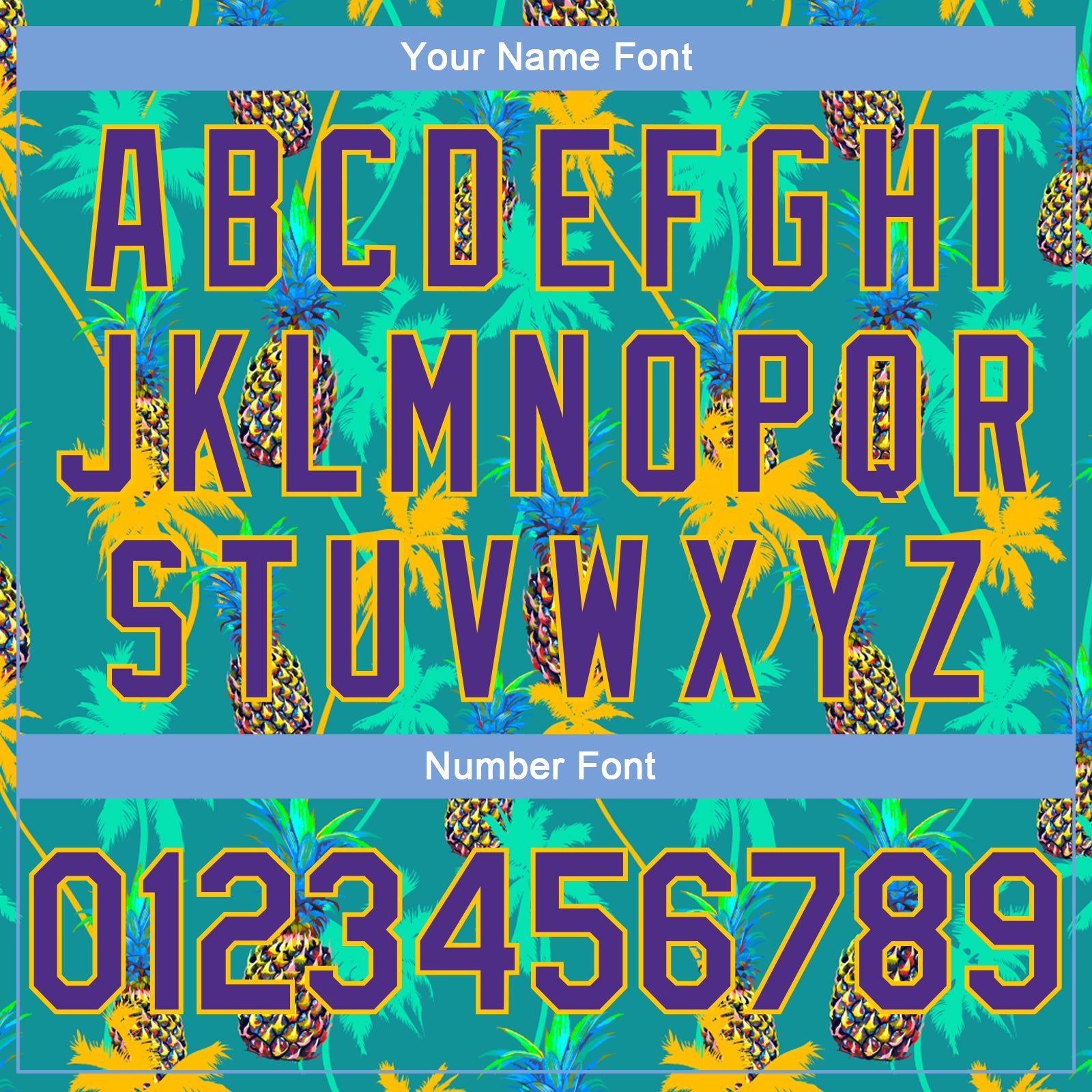 Personalized Kelly Green Purple-Gold 3D Pattern Hawaii Palm Trees Pineapples Authentic Basketball Jersey Team Custom Name and Number