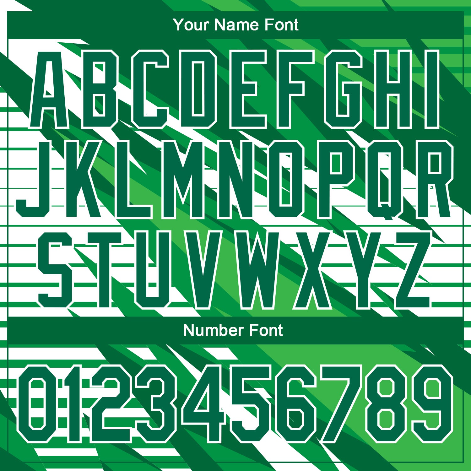 Personalized Kelly Green White 3D Pattern Design Bomber Full-Snap Varsity Letterman Jacket Team Custom Name and Number