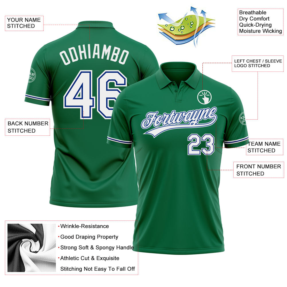 Personalized Kelly Green White-Royal Performance Vapor Golf Polo Shirt Team Custom Name and Number