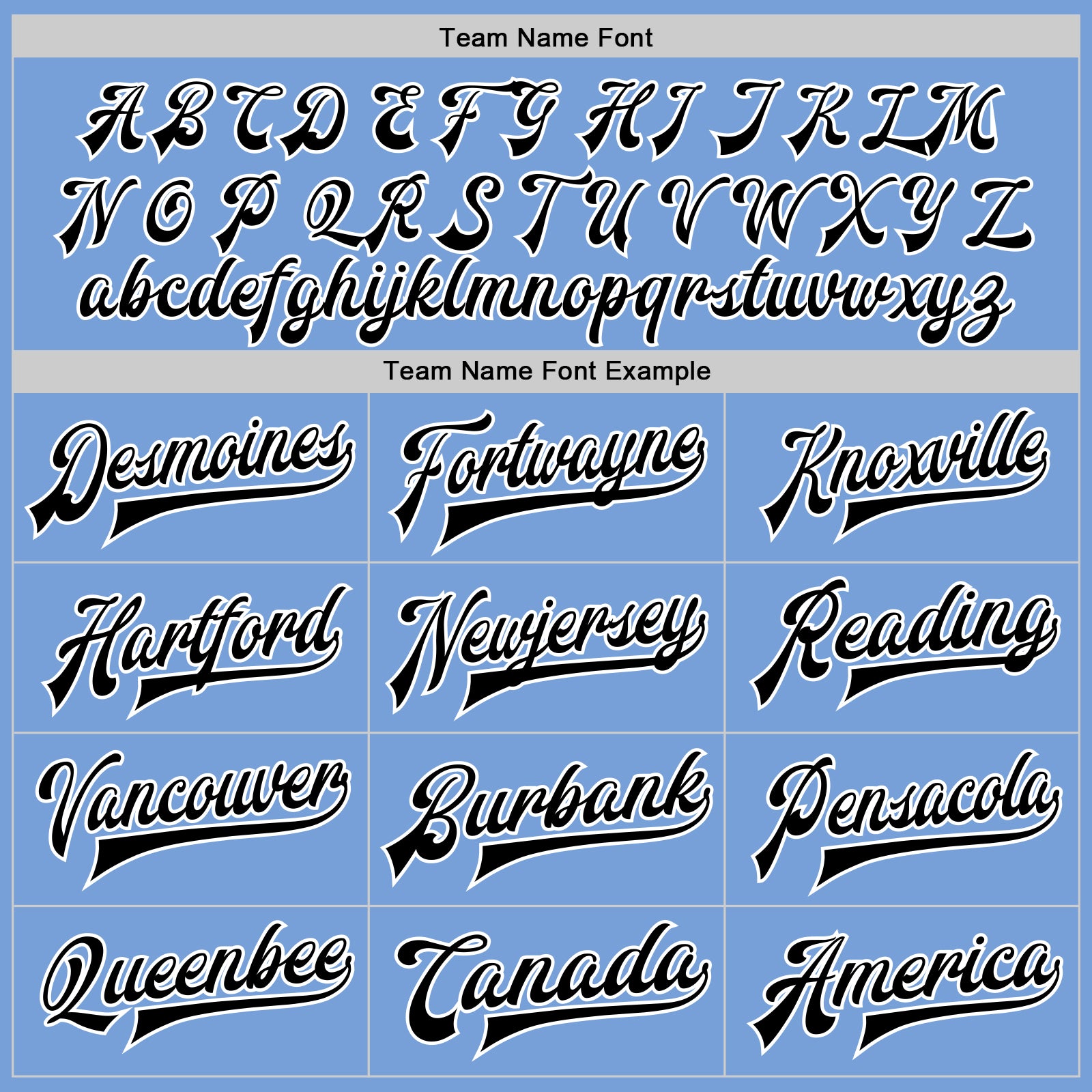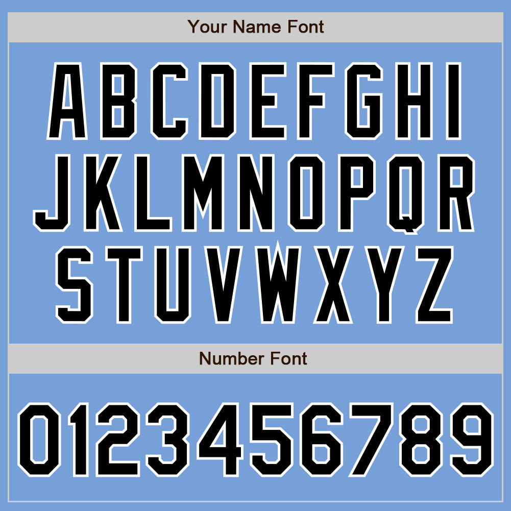 Custom Team Name & Number Light Blue Black & White Varsity Bomber Full-Snap Jacket Personalized Light Blue Black-White Bomber