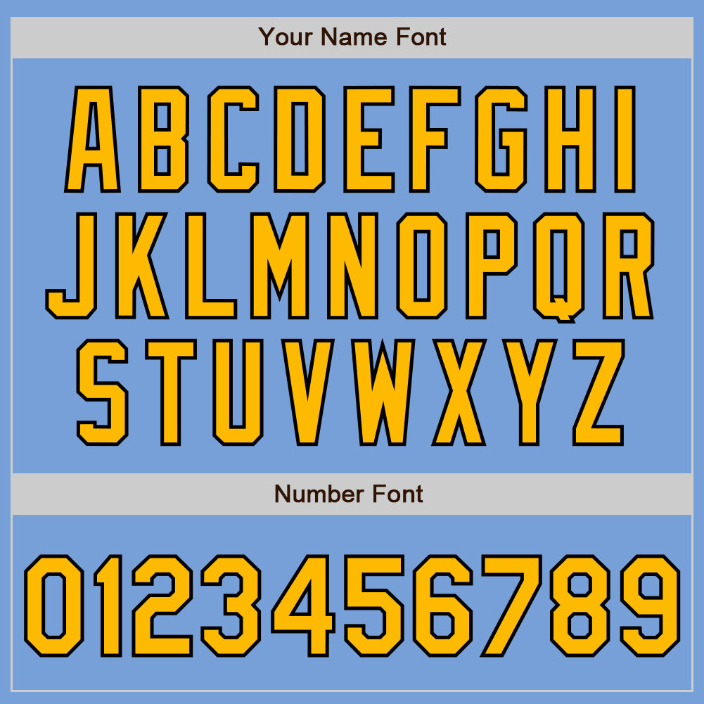 Personalized Light Blue Gold Black Varsity Letterman Jacket Bomber Full-Snap Personalized Light Blue Gold-Black Bomber Full-Snap
