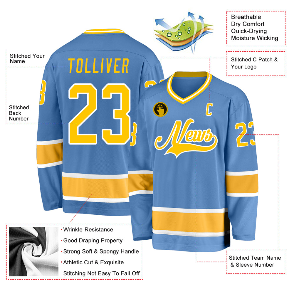 Custom Light Blue Gold-White Hockey Jersey with Personalized Name and Number – Team Apparel Personalized Light Blue Gold-White