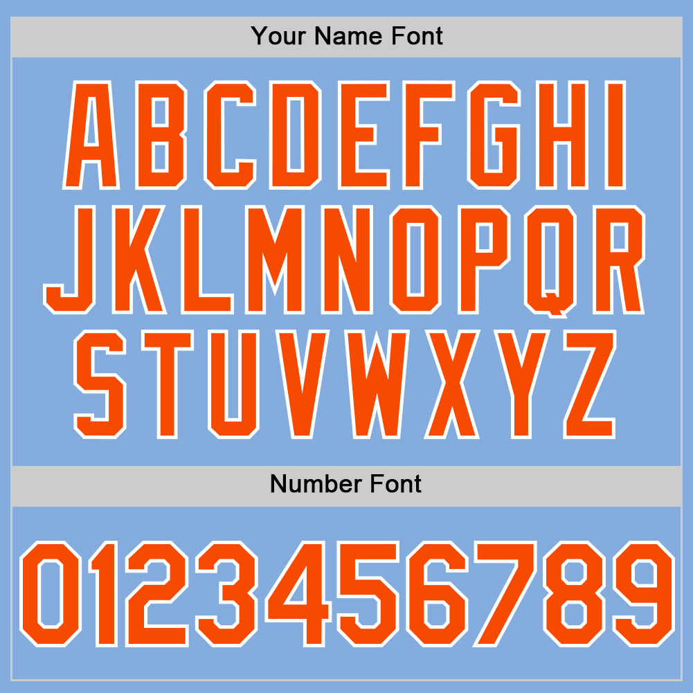 Personalized Light Blue Baseball Jersey – Orange-White Authentic Sleeveless Design Personalized Light Blue Orange-White Authentic